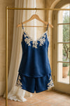 confectionné en pure soie légère et fluide, il épouse délicatement vos mouvements. chaque pièce — nuisette, short ou robe longue — est pensée pour mêler féminité, élégance et confort.